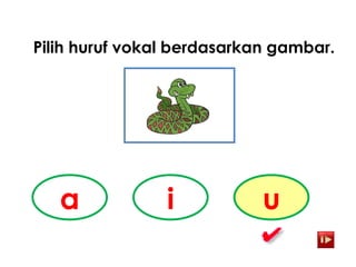 E o a u i soalan 4. Huruf vokal atau lebih dikenali sebagai huruf hidup atau huruf saksi kerana mereka memberi bunyi kepada huruf-huruf konsonan bagi membentuk. Yang Indah Itu Bahasa.