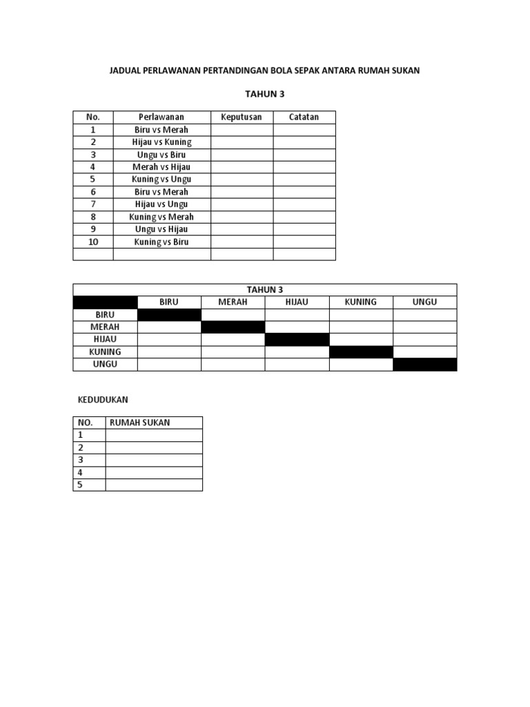 Jadual Perlawanan Pertandingan Bola Sepak Antara Rumah Sukan Pdf