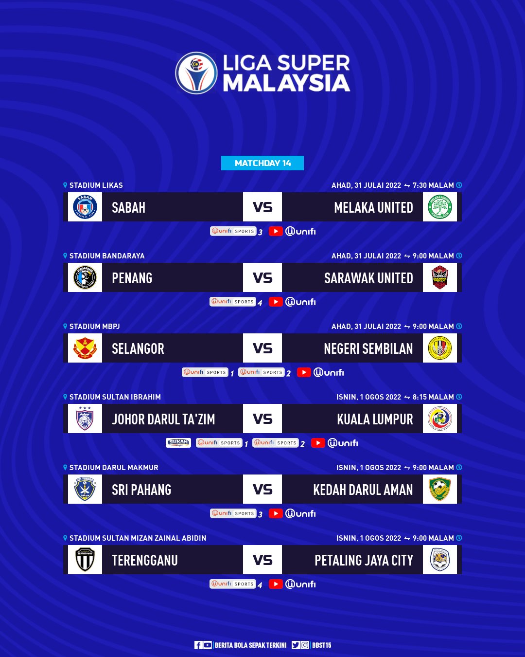 Berita Bola Sepak On Twitter Jadual Perlawanan Ke 14 Liga Super Sabmel Penswu Selnse Jdtkul Srpkda Terpjc Ligasuper2022 Https T Co Hicgl2jjgv Twitter